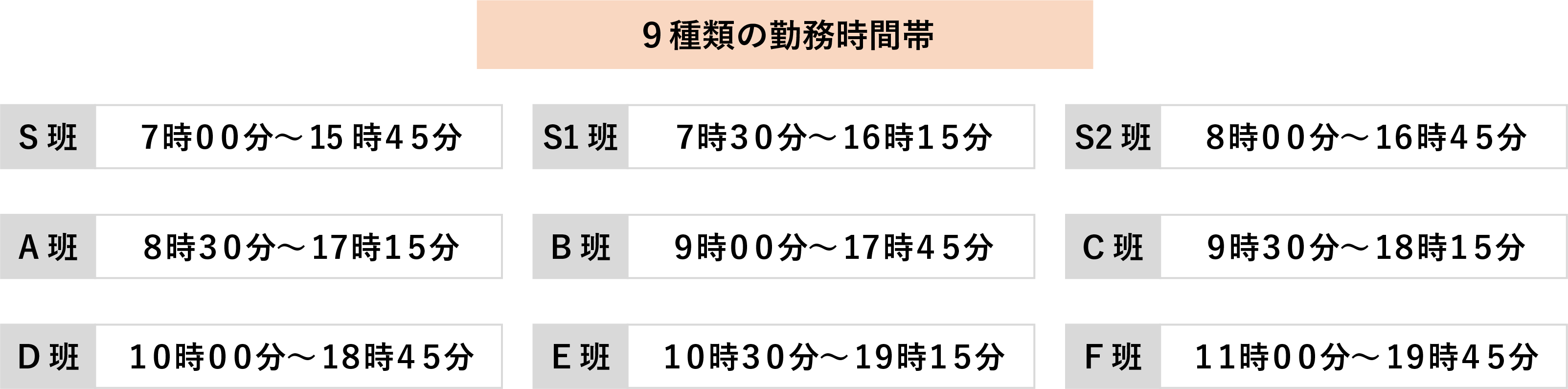 勤務開始時刻を幅広い時間帯の中から柔軟に選択することの出来る制度です。