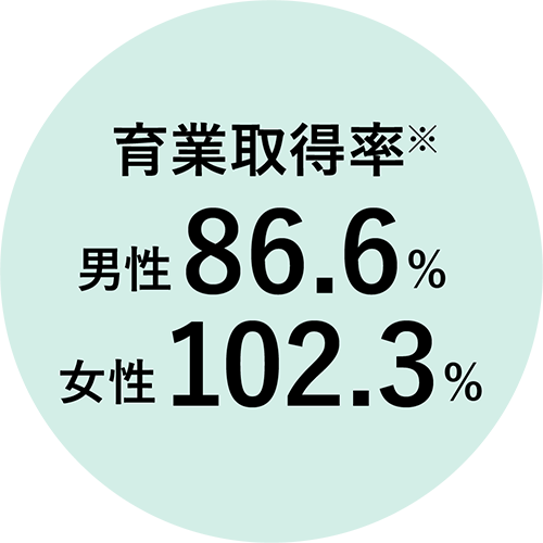 取得率:「当該年度中に新たに育業可能となった職員数」に対する「当該年度以前に育業可能となった者も含め、新たに育業した者」の割合とする国と同様の方法で算出